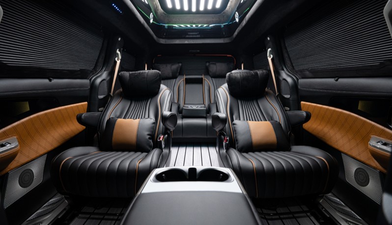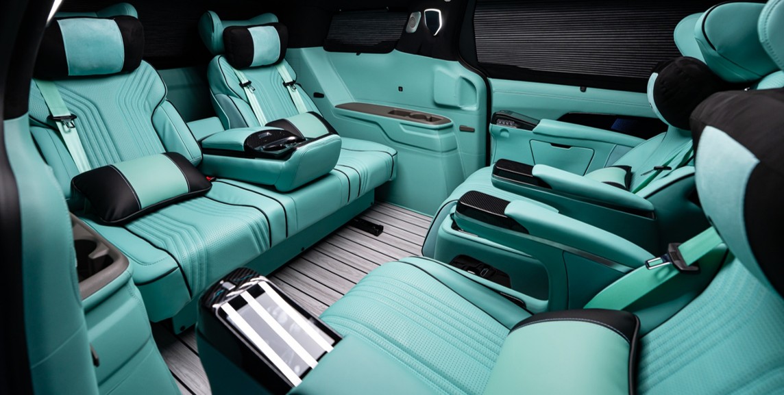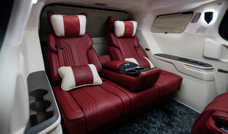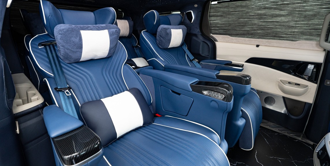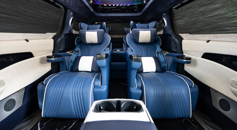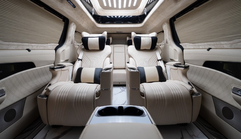 Crafted from premium Nappa leather with refined stitch lines, these seats bring a touch of elegance to the private limousine space.