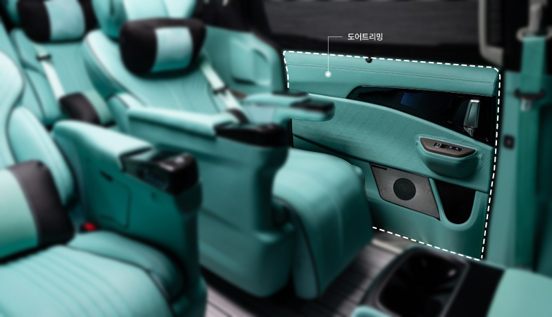 Premium leather is applied to the door panels, completing a more refined and cohesive interior atmosphere. Meticulous detailing enhances the sense of luxury.
