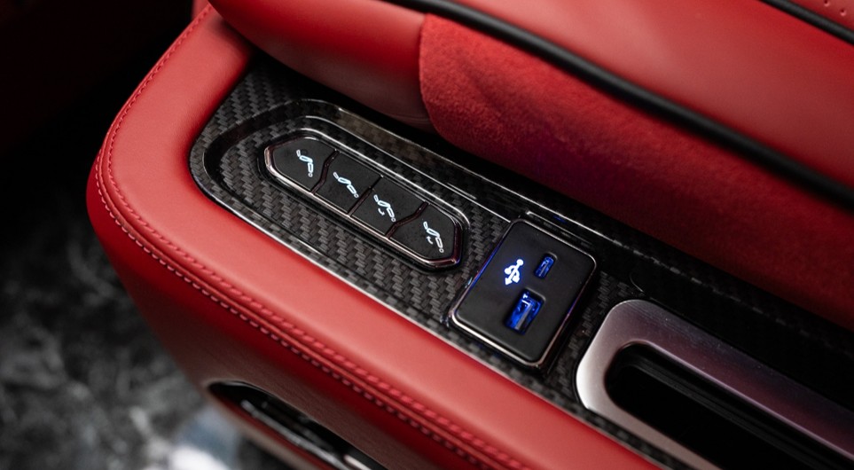 The luggage and trunk areas are trimmed in premium leather, bringing visual harmony to the interior design. Elegant craftsmanship elevates the overall luxury of the space.